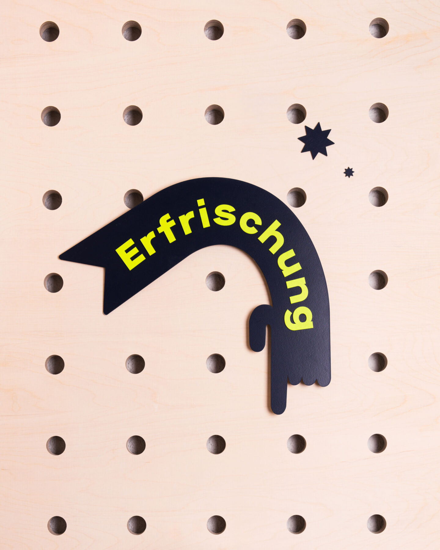 Ein Pegboard-Wand bietet eine flexible Fläche für wichtige Infos und Alltagsdetails. Eine kleine Sirupstation lädt die Jugendlichen ein, sich einen Moment Zeit zu nehmen und anzukommen. Ergänzt wird der Bereich durch einen Feedback-Briefkasten, in dem Gedanken, Wünsche oder Kritik anonym geteilt werden können.