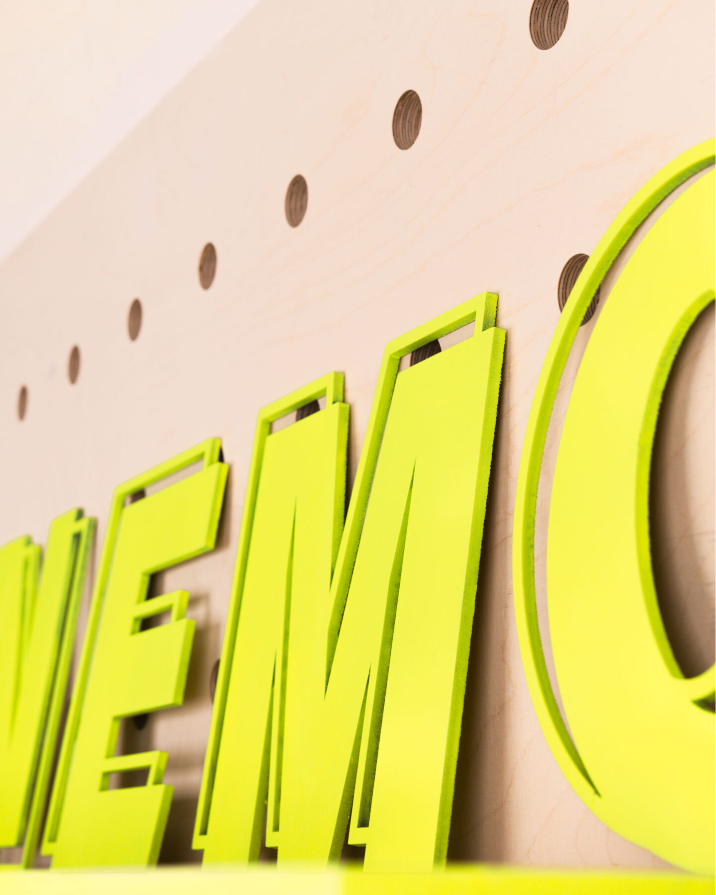Der neu gestaltete Raum empfängt mit klarer Struktur und einer leuchtenden, jugendnahen Atmosphäre. Neben dem gestalterischen Konzept haben wir auch Inhalte und Signaletik-Elemente integriert, die das Ankommen erleichtern und Transparenz fördern.