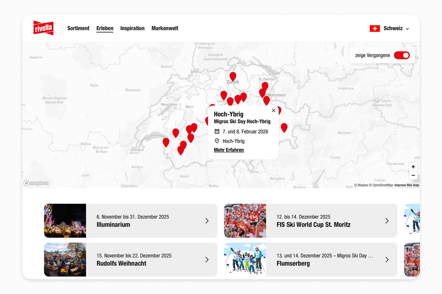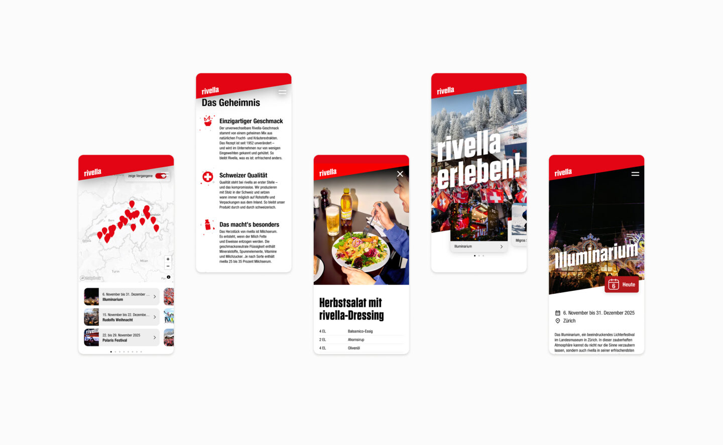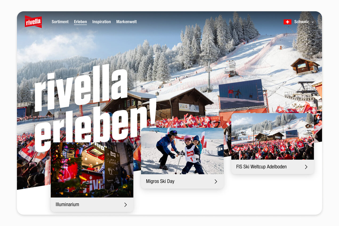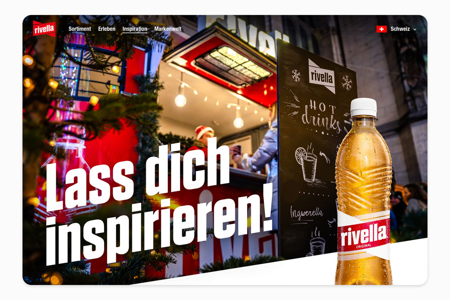 Die mobile Version der Rivella-Website ist schnell, übersichtlich und leicht zu bedienen. Inhalte sind klar gegliedert und lassen sich mit dynamischen Animationen vertikal erkunden.